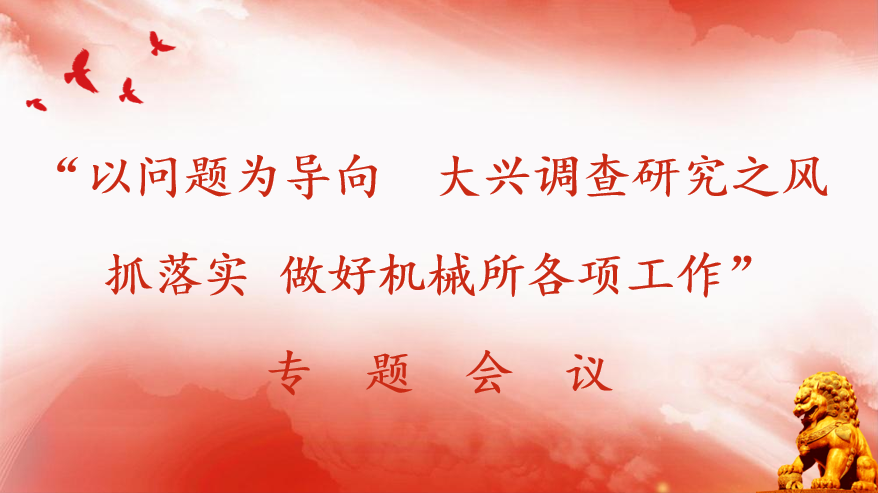 通過(guò)本次專(zhuān)題會(huì)議,全所人員一致表示要以習(xí)近平新時(shí)代中國(guó)特色社會(huì)主義思想為指導(dǎo),加強(qiáng)調(diào)研,以問(wèn)題為導(dǎo)向,大興調(diào)查研究之風(fēng),抓落實(shí),做好機(jī)械所各項(xiàng)工作。