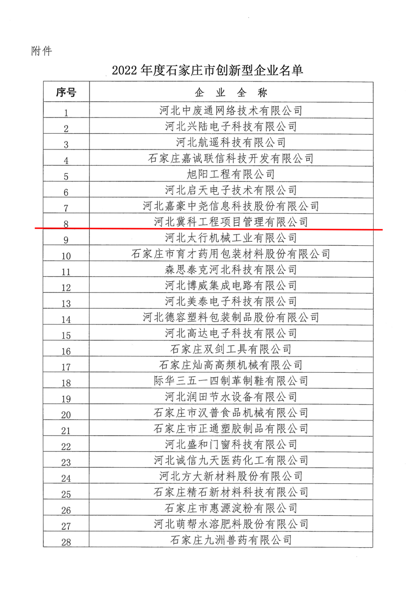創(chuàng)新型企業(yè)認(rèn)定工作的開展,旨在增強(qiáng)企業(yè)創(chuàng)新活力,進(jìn)一步推動(dòng)以企業(yè)為主體、市場(chǎng)為導(dǎo)向、產(chǎn)學(xué)研相結(jié)合的技術(shù)創(chuàng)新體系建設(shè)。冀科公司將以此為契機(jī),夯實(shí)創(chuàng)新基礎(chǔ),貫徹新理念,搭建新格局,著力加強(qiáng)創(chuàng)新體系建設(shè),著力推動(dòng)科技創(chuàng)新平臺(tái)升級(jí),著力促進(jìn)創(chuàng)新能力提升,為企業(yè)高質(zhì)量發(fā)展賦能。