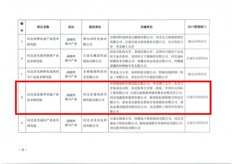 為深入貫徹落實黨的二十大精神,深入踐行“健康中國”戰(zhàn)略,立足醫(yī)康養(yǎng)融合高效發(fā)展,探索醫(yī)康養(yǎng)全產(chǎn)業(yè)鏈優(yōu)質(zhì)高效發(fā)展的路徑和舉措,河北省建筑科學(xué)研究院有限公司牽頭發(fā)起成立的河北省醫(yī)康養(yǎng)設(shè)施產(chǎn)業(yè)技術(shù)研究院近日通過河北省科學(xué)技術(shù)廳審批。