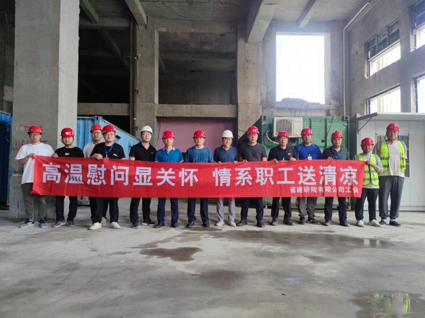 院公司總經(jīng)理葉金成同志及同行領(lǐng)導(dǎo)頂著烈日、冒著酷暑,來(lái)到工地一線實(shí)地調(diào)研指導(dǎo),并為全體參建員工送來(lái)關(guān)懷慰問(wèn)。巖土所所長(zhǎng)李金山同志將項(xiàng)目概況和現(xiàn)場(chǎng)進(jìn)展情況進(jìn)行了介紹。
